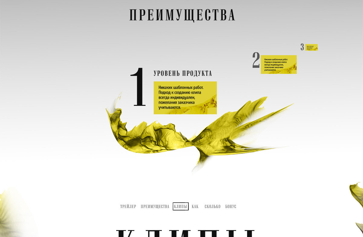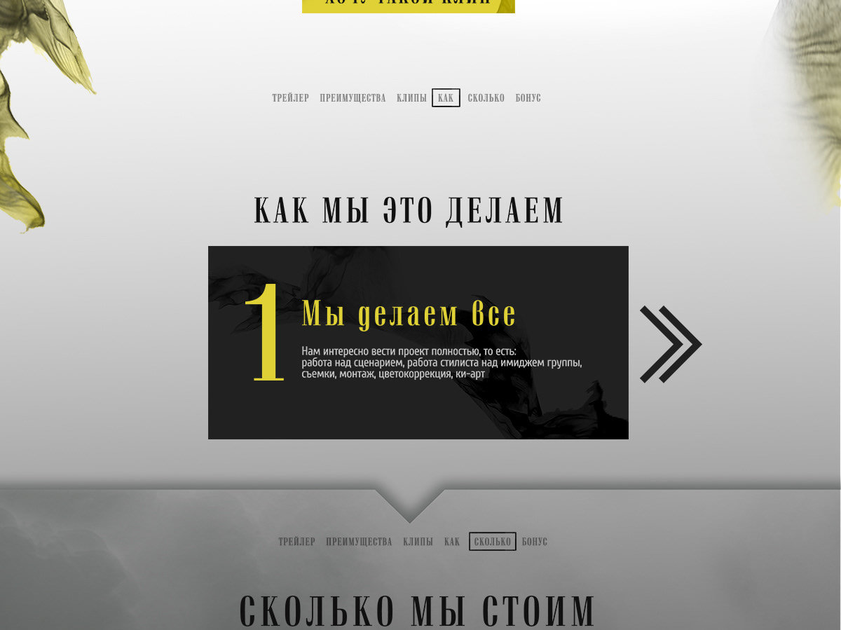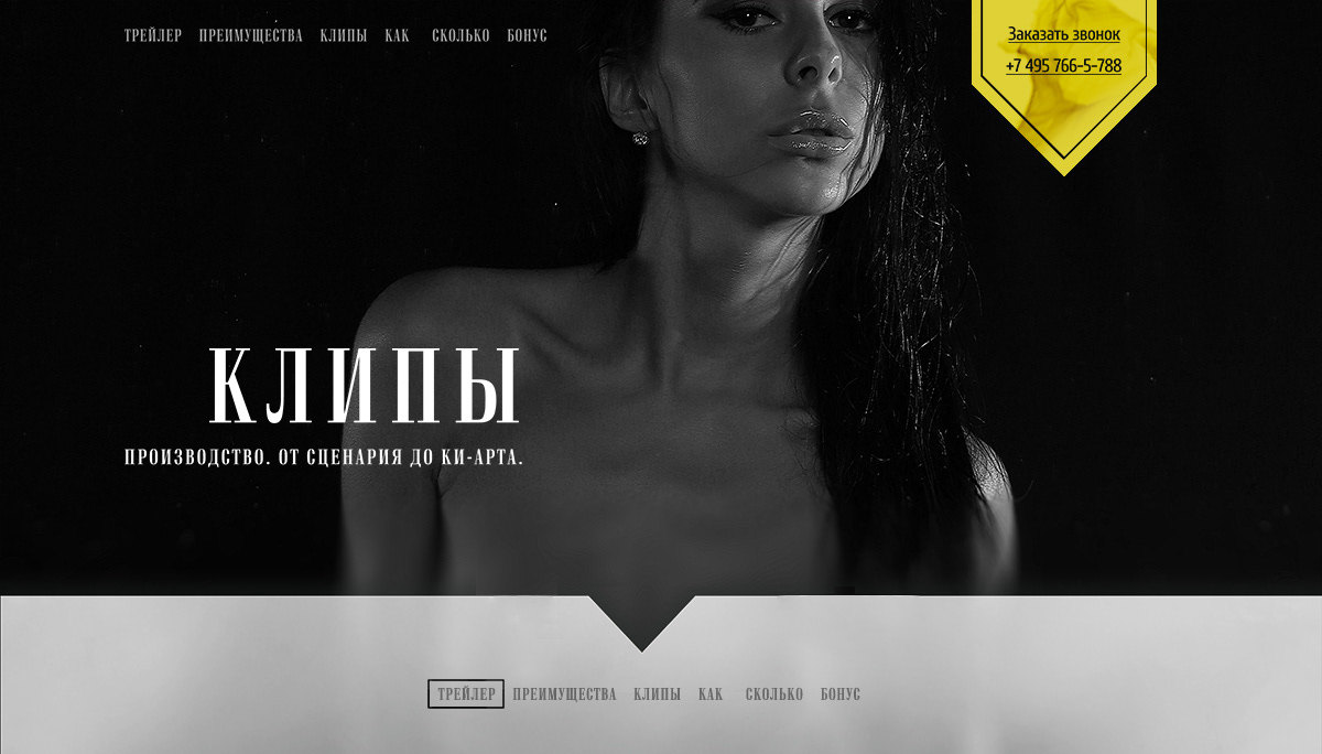 Компания работает с аудиторией, мечтающей попасть в шоу-бизнес. Сайт должен отражать тематику, быть понятным и мотивировать к заказу клипа.